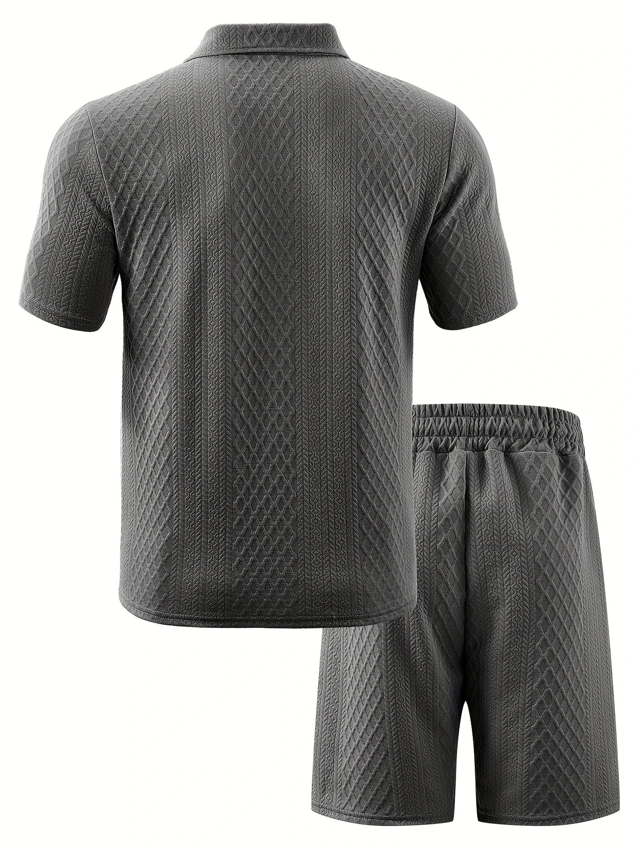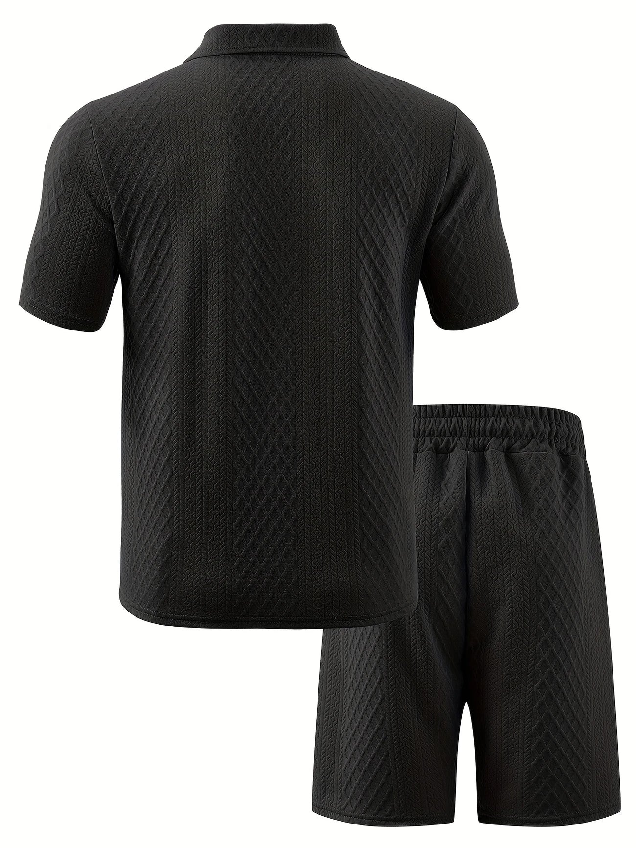 ✅Sophisticated Textured Design: This set features an intricate diamond-knit texture throughout both the shirt and shorts, offering a refined and upscale aesthetic. The pattern adds depth and character, making it suitable for both casual wear and more polished occasions. It gives a premium feel that elevates your everyday look effortlessly.